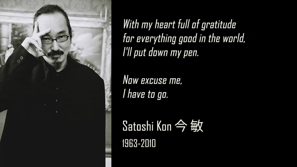 I still can't get over it. Divine talent taken so early in such a horrid way. The pancreatic cancer murdered Kon in mere months, and he was so malnourished and ill he refused to show himself in public in those last months.