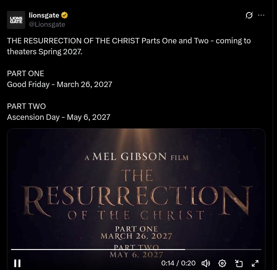 >We’re hearing from sources that each film could come with a budget in the $100M region, making it a combined $200M prospect. Those are rare numbers these days in the independent market.>Sources close to the project have confirmed to us that it will include battles between angels and demons and forces of ‘good and evil’ in other realms, which probably goes some way to explaining the big budget.https://deadline.com/2025/10/mel-gibson-resurrection-christ-big-budget-angels-demons-1236592967/