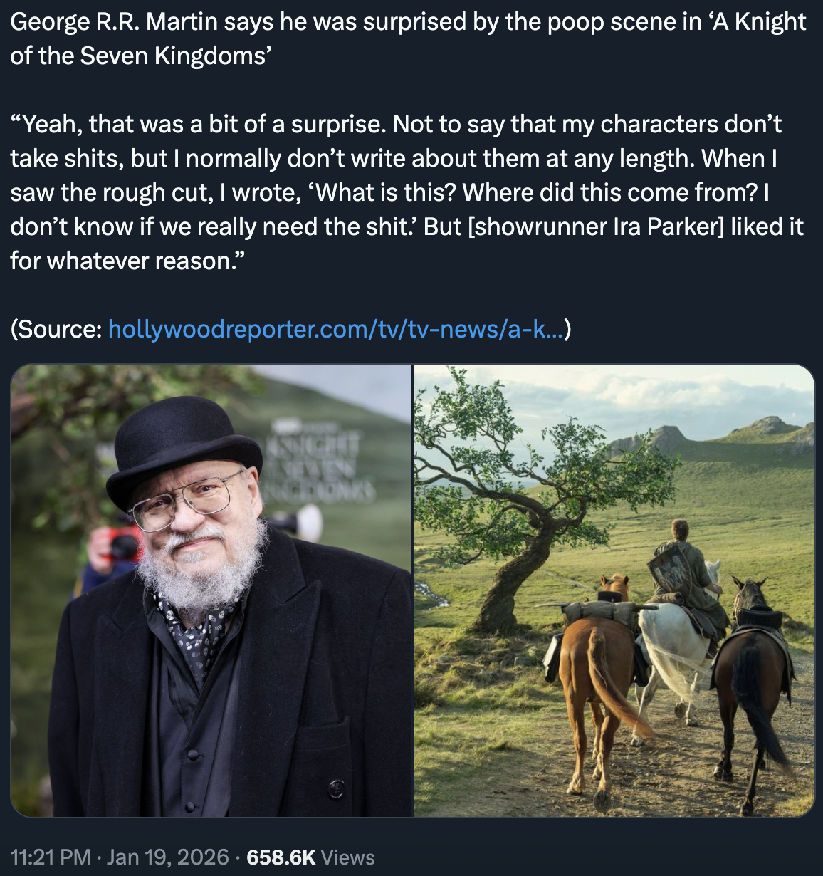 >>217467348>i normally don't write about them at any lengthoff the top of my head:>tywin died on while taking a shit>dany had explosive diarrhoea>way too many instances of people peeing>the ship groaned and growled beneath him, like a constipated fat man straining to shit