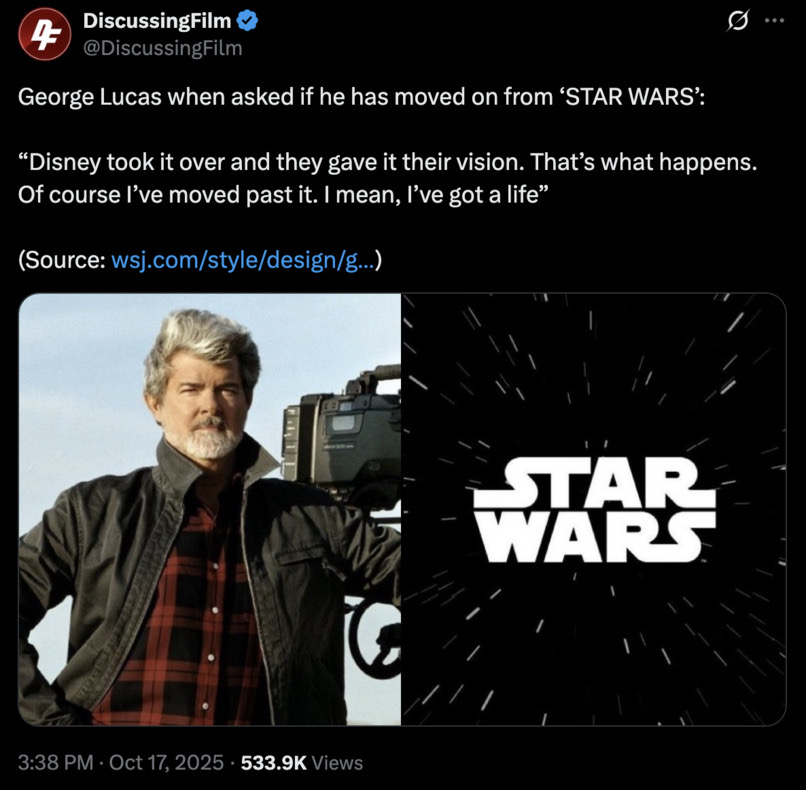 How can he really say he's moved on from Star Wars when half of his museum is dedicated to it