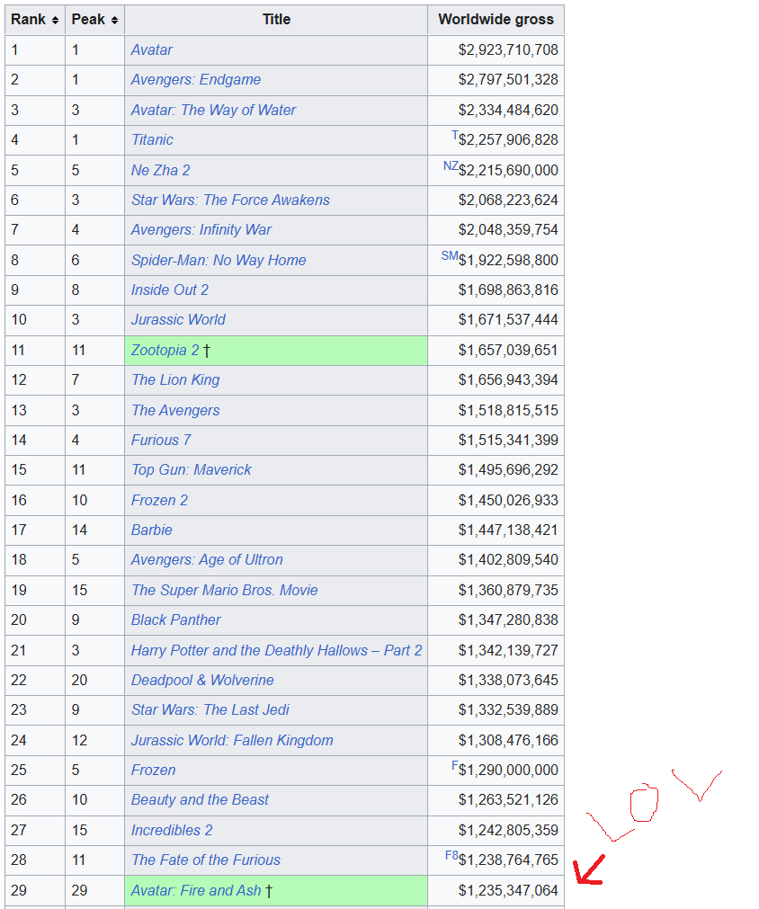 It's CameroverNot often you can call a movie that made a billion dollars a massive financial disappointment, but hey, The Last Jedi is right there next to itAvatar 2 made less money than the first oneAvatar 3 plummeted