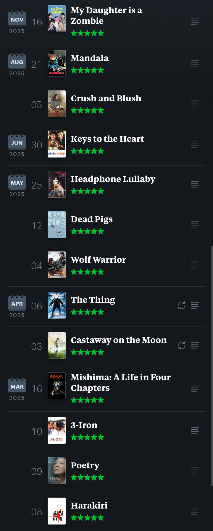 >>217073234I should have specified movies from 2025, not in general, which is what these year in review summaries are showcasing. Anyways I'll watch some of these at some point, I haven't watched any Korean films at all except for JSA a month ago which I quite liked.