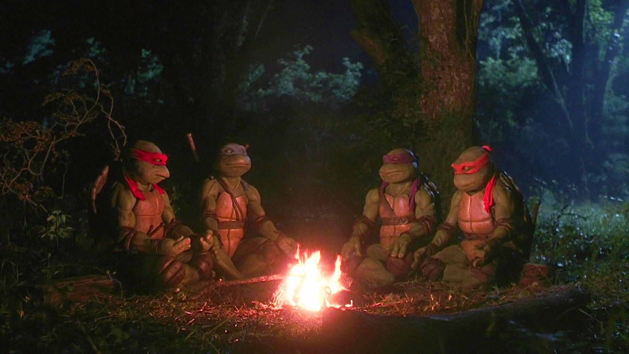 The lighting and cinematography are actually really good in this. This and RoboCop use a technique called chiaroscuro, but because they're superhero films, people don't think of them as using astry techniques. There's actually several shots that if you were to paint them and replace the turtles with human figures, they would look like Renaissance paintings.