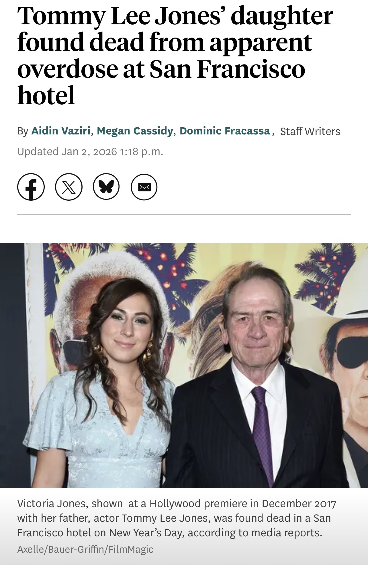 Poor guy, that must be rough.https://www.usatoday.com/story/entertainment/celebrities/2026/01/02/tommy-lee-jones-daughter-victoria-dead/87990512007/