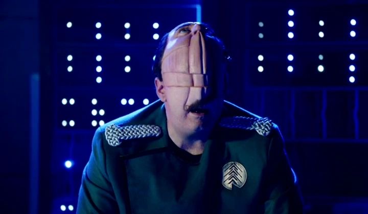 Red Dwarf did the 3d printed crew thing better. Like having the printer jam so one came out janky