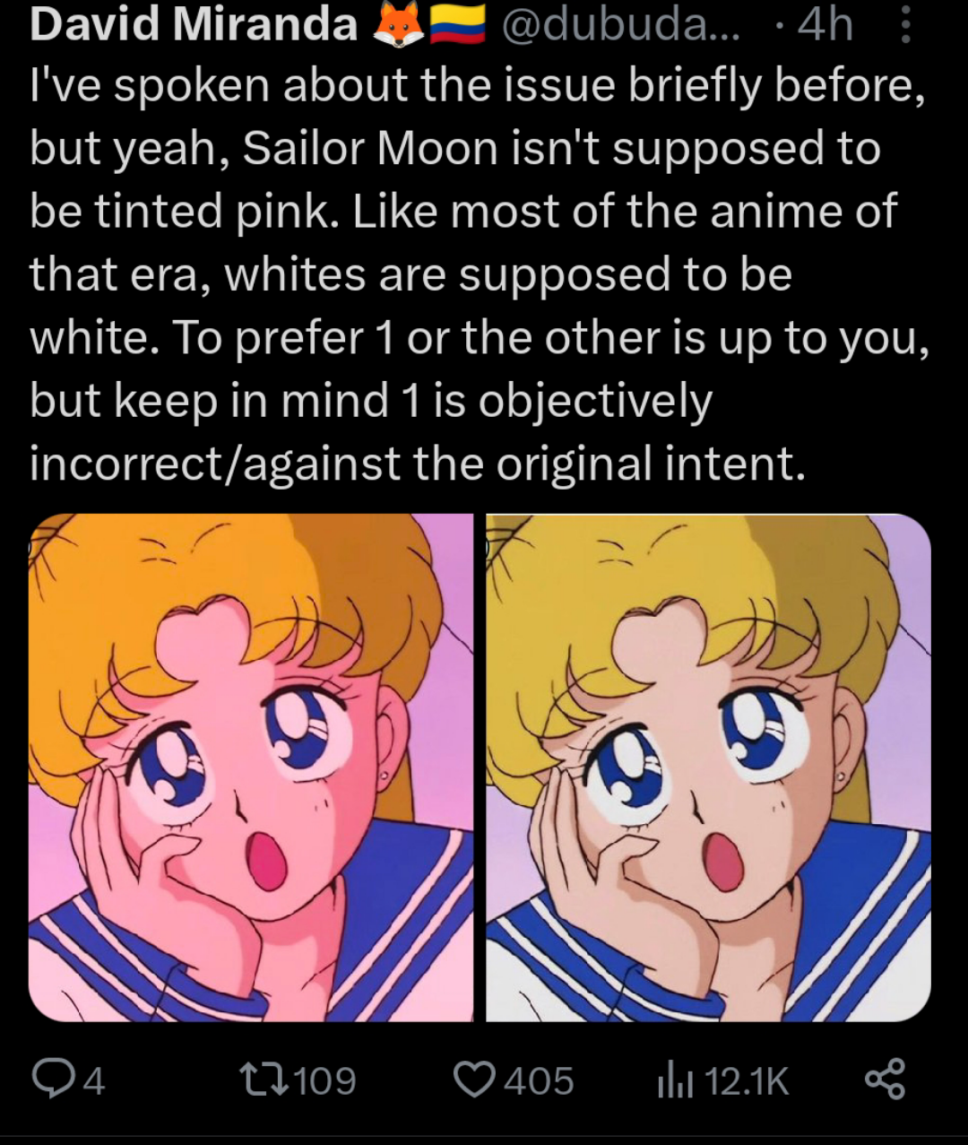 >>217497762When I saw the show on YTV in 1998, the show looked like the right more or less. The 16mm film reels had degraded over time, and a pink or yellow tint is very common as certain dyes expire. The online fandom is mostly built around the DVD releases rather than the original TV broadcasts. The studio is notoriously short sighted and cheap, and has refused to do a proper HD scan of both Sailor Moon and Dragon Ball. I mean it's obvious since there's magazines that printed screenshots from the show.