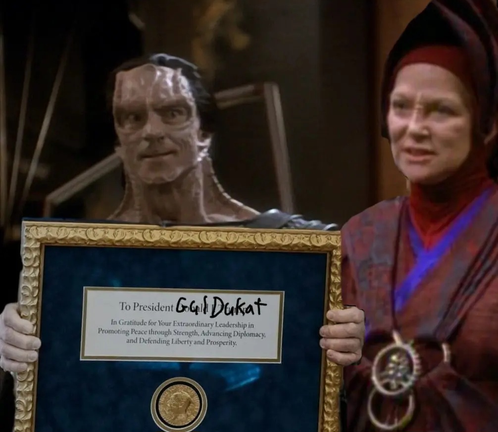 She gave him her peace prize. That was nice.