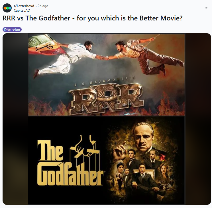>>219280944>>219280932Pure kinohttps://www.youtube.com/watch?v=Qj4lHKaG5vM>>219280609Americans are obsessed with their grimdark realism and woke messaging while Indians are out there just making comfy movies.