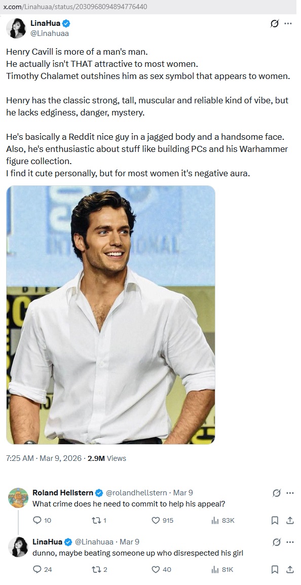 >stating this when Henry Cavill, an actual homosexual, exists.