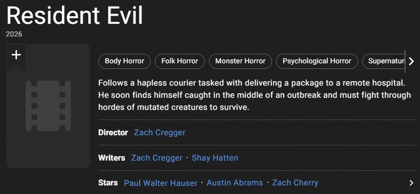 >>219103553>I honestly think this will be at least decent.Why? Even the games are kind of shit. The series only got popular because it was one of the first mainstream horror games. It's been coasting on that popularity for decades. I don't see how a movie based on a mediocre game could ever be anything but mediocre. And given the state of Hollywood today, there's no chance of it even being that.