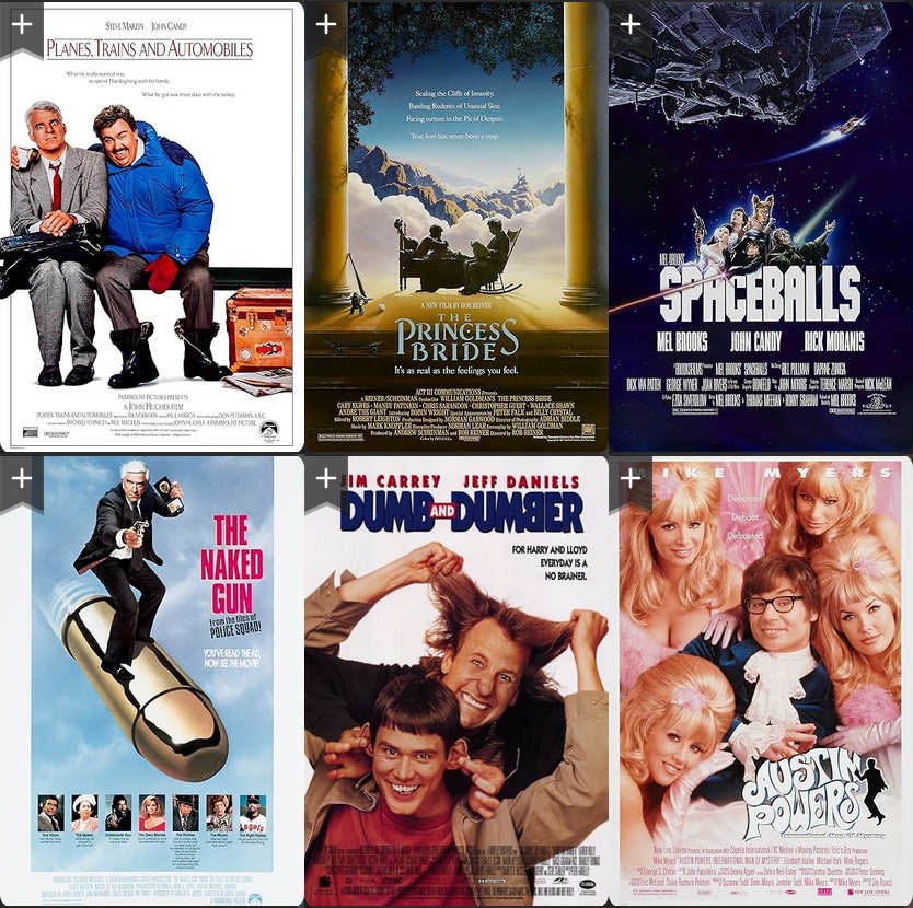 The only thing I'm sure of is Spaceballs is last, I think I smiled a bit at the desert combing joke and that's it. Naked gun has the intro, dumb and dumber the toilet joke, austin powers has prime Liz Hurley