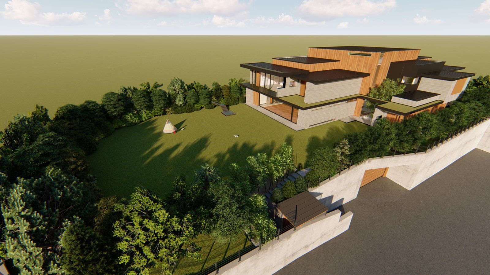 A walled off fancy house with a large lawn in the middle of the city, and with a bunker to boot, seems like the dream.