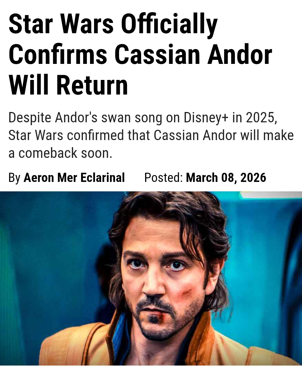 What will it be? Force ghost Andor or another prequel that takes place even further back in time despite him physically looking ten years older than he was in Rogue One?