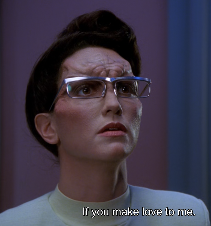 >Ok Voyager writers room, I'm gonna need you to write an episode that has Troi on the beach