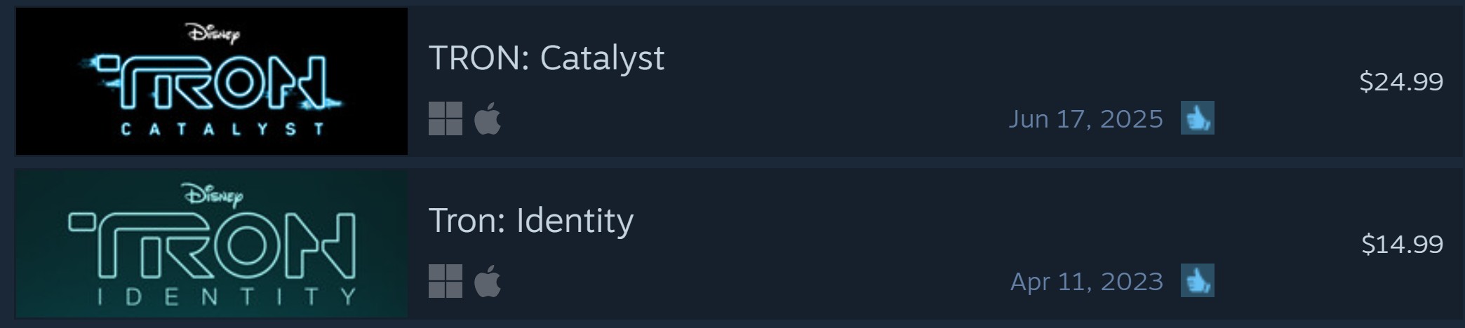 >>215176961Two Tron games by Bithell Games, a VN in 2023 and a isometric action - sim game in 2025. Not super amazing games by any means but they were good if you liked Tron. Catalyst and their John Wick games both sold poorly so the studio couldn't get any more work.