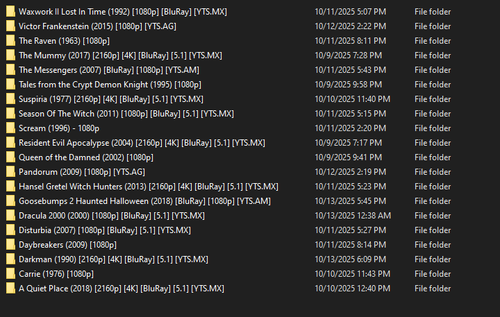 Don't mind me, I'm just waiting on 4k remasters of:>The Dentist 1 & 2(1996-1998)>The Fly (1986)>Inferno (1980)>Frankenhooker (1990)>The Blind Dead series (1972-1975)>Bad Taste (1987)>The Lair of the White Worm (1988)>Gothic (1986)>The Devils (1971)>Metamorphosis: The Alien Factor (1990)>Scarecrows (1988)>Manhunter (1986)>Phantom of the Paradise (1974)>The Prowler (1981)>Wishmaster series (1997-2002)>Masters of horror (2005 - 2007)>Elves (1989)>Critters 1 & 2 (1986-1988)>Gremlins 2: The New Batch (1990)>Carnosaur (1993)>Pieces (1982)>The Serpent and the Rainbow (1988)>Cube (1997)>Blood Dolls (1999)>Gozu (2003)>Roger Corman’s Poe Cycle (1960-1964)>Cast a Deadly Spell (1991)>Maximum Overdrive (1986)>Night Flier (1997)>Near Dark (1987)>Shadow of the Vampire (2000)>Stage Fright (1987)