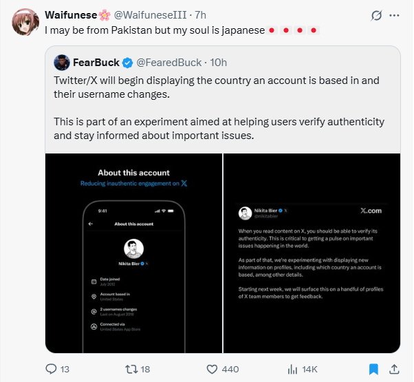 >>215249680Ban India already! Or atleast put regional flags on blue boards. Fuck! Even X is going to put regional flags now because everyone has had it with jeets