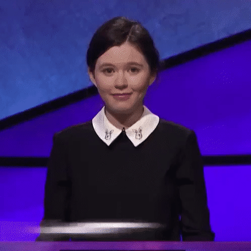 >>215267402To be fair she was the only one to get the final Jeopardy right lol.Question kinda gave it away with its phrasing so I was able to get it but the other 2 contestants bombed lol, she wont last another day