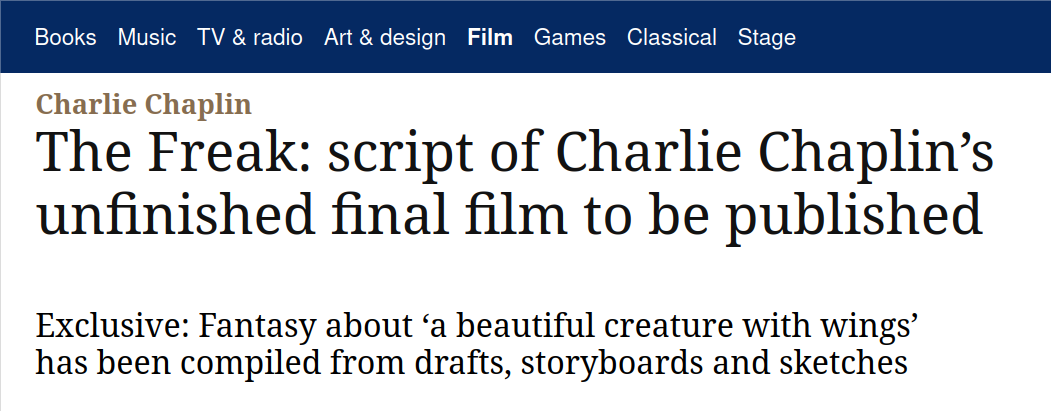 https://www.theguardian.com/film/2025/oct/11/the-freak-script-charlie-chaplin-unfinished-final-film-to-be-publishedSent that freak flying.