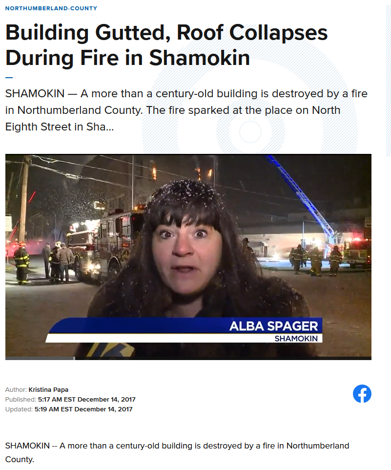 >>215354602weirdly she was a witness in another fire related (a fire in her apt complex) local news story just a few weeks before her death, she seemed like quite a character, almost wish we had more info on her she seems crazy and weird enough i want to know more about her life story lolalso how did she die? the video from only a few weeks earlier she seemed fine and full of life, my guess would be drugs she seemed to have big cokehead energyhttps://www.wnep.com/article/news/local/northumberland-county/building-in-danger-of-collapsing-after-fire-in-shamokin/523-a6428cd8-c3f8-4939-8d78-fe4a5472140f