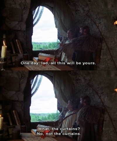 >>215353442Whole film is just so incredibly quotable>Must be a king. – How'd you know? – He hasn't got shit all over him.>What also floats? – Apples...very small rocks...churches...lead>So... If she weighs the same as a duck... She's made of wood.>And there was much rejoicing.>Listen, strange women lying around in ponds distributing swords is no basis for a system of government. Supreme executive power derives from a mandate from the masses, not from some farcical aquatic ceremony. I mean if I went around saying I was an emperor just because some watery tart threw a cimitar at me they'd put me away!>Where'd you get the cocoanuts? – We found them. – In Mercia? The coconuts are from the tropics, this is a temperate zone.>Sir not appearing in this film.>What is your name? – There are some who call me... Tim.>Bring out the holy hand grenade!