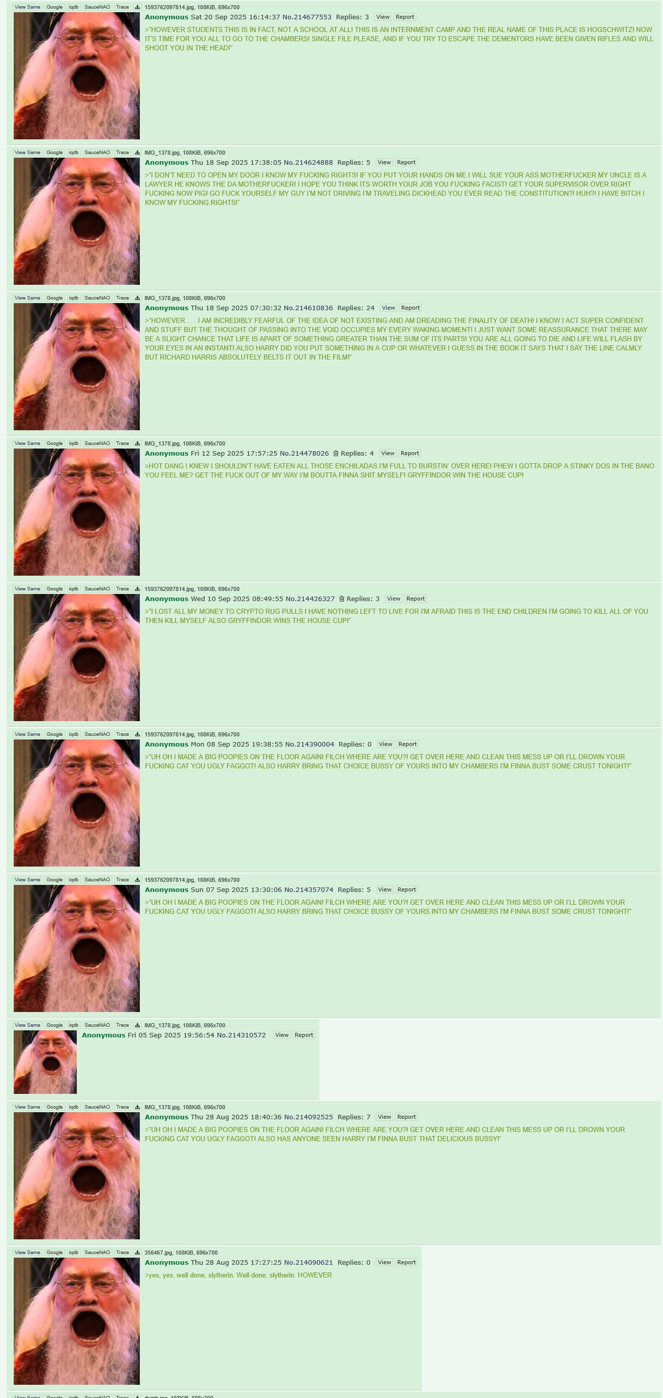 >>215375947>welcome students, welcome>now, I know that we are only a few years out from wizard hitler having taken control of the wizarding world and his ghost is somewhere in a forest in albania>HOWEVER, please welcome our new slytherin students, all of whom are the sons and daughters of the commanders of the wizarding SS>yes, they will be permitted to continue to propogandise their own beliefs regarding racial purity. Just treat them as an anachronism, I am certain that there will be no consequence to having them around