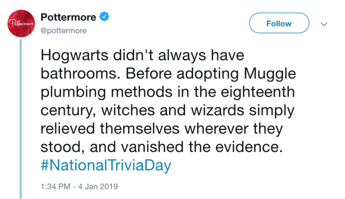 >>215381824Hogwarts was built almost 1000 years before they added the plumbing.