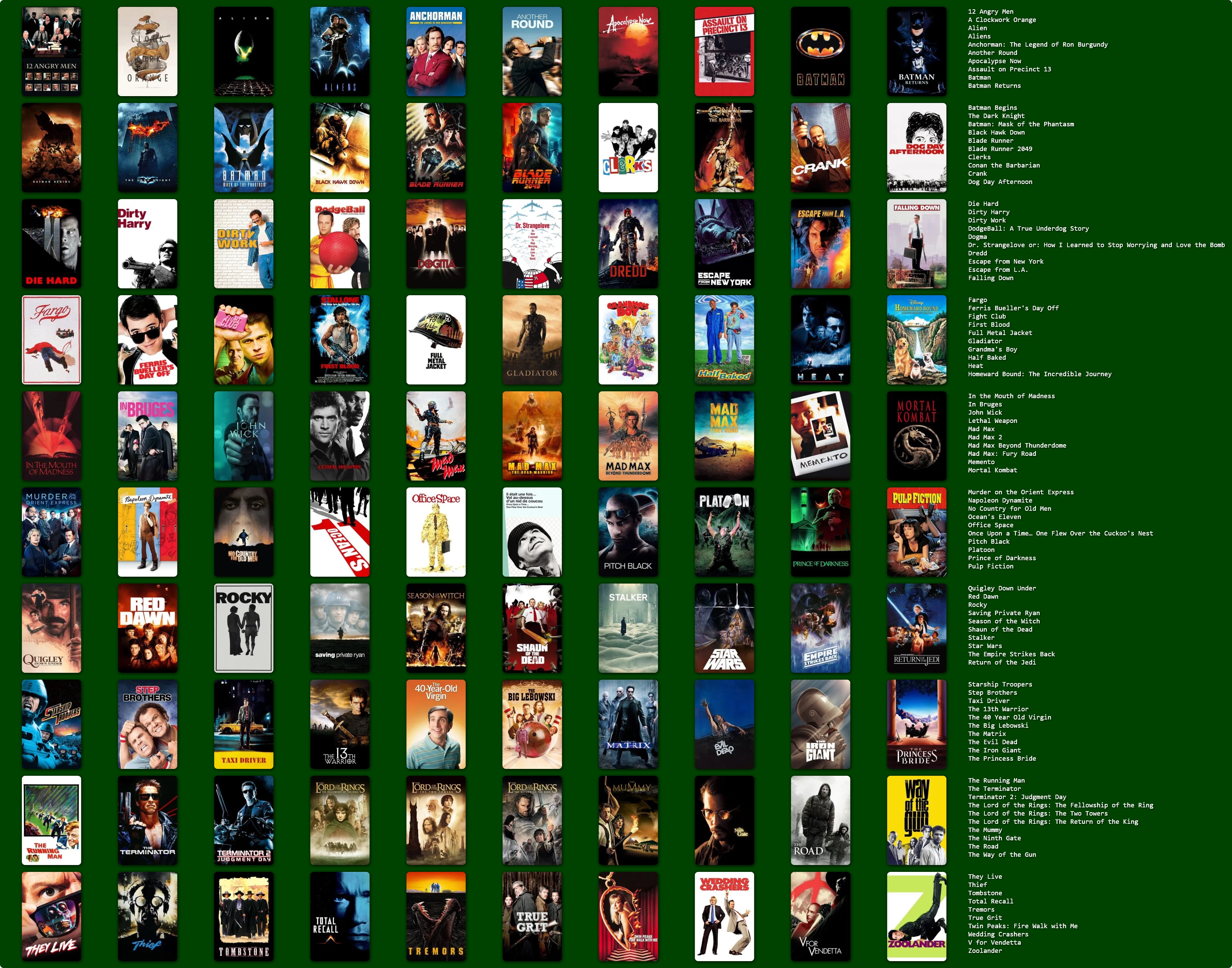 >>215382164Good list but you're a fag for ranking fury road higher than road warrior