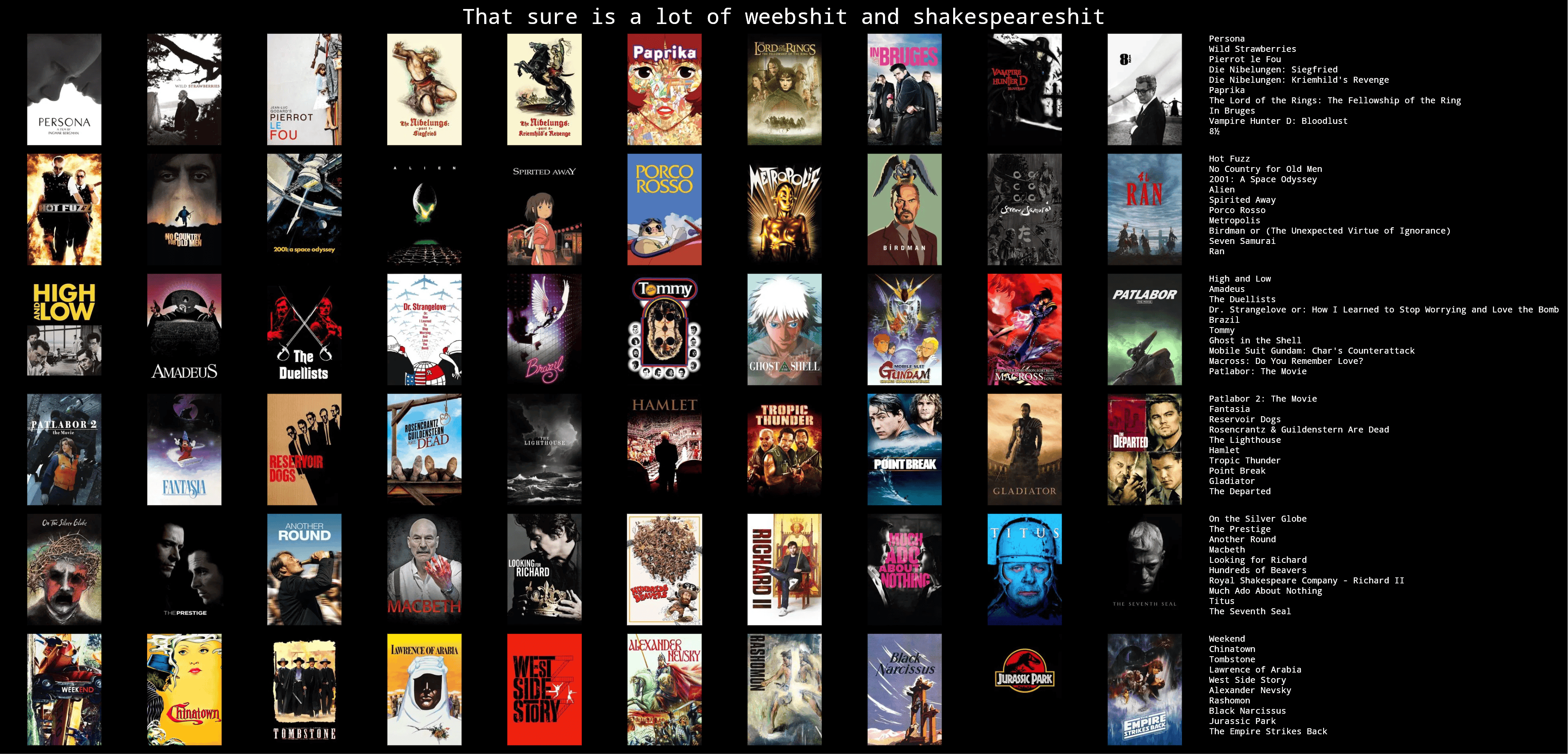 >>215382862Blade Runner and Gladiator are too highAmadeus, Robocop, and especially Aliens are too lowEraserhead is a fucking meme, get it off this list