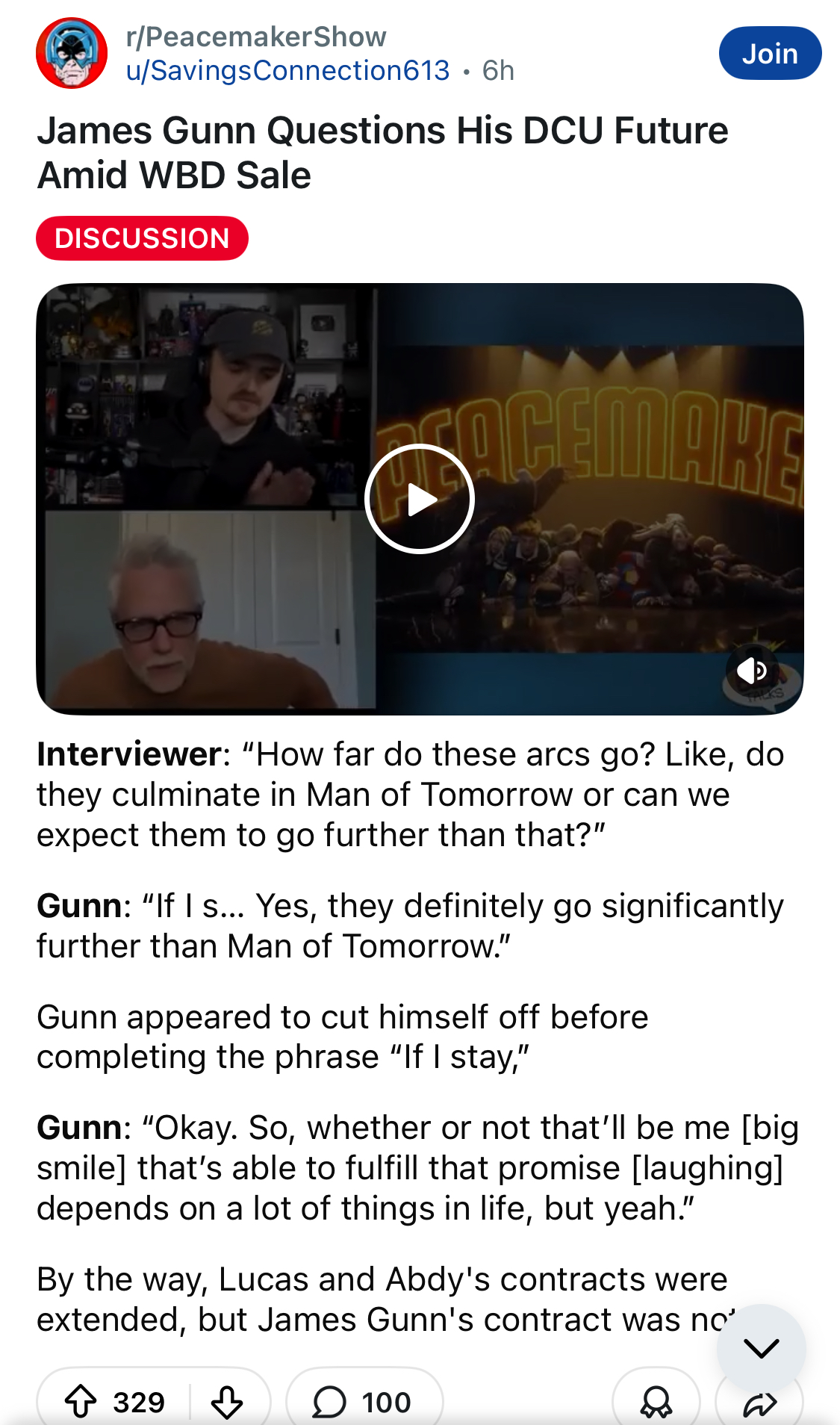 Is there any substance whatsoever to the idea that Gunn is going to be out? How can they have any idea what will happen if we have no idea who's going to buy WB / make that decision?
