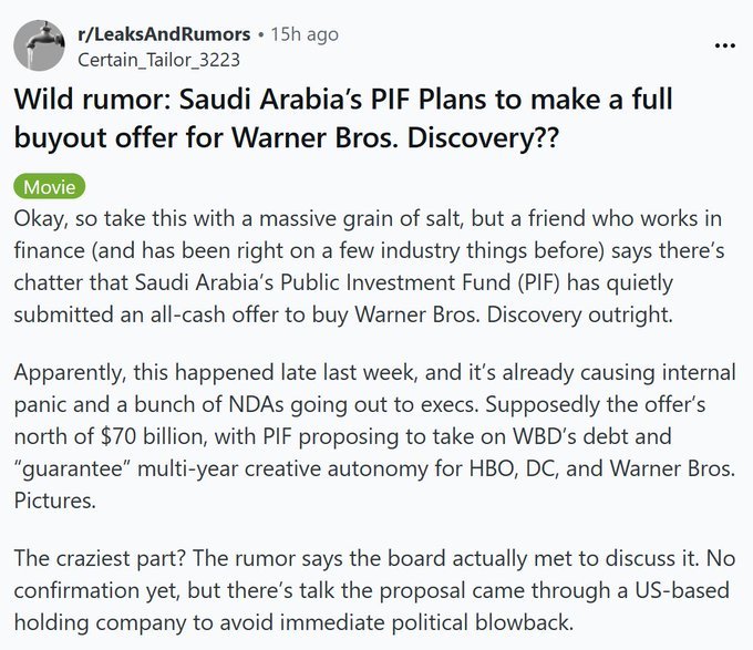 >>215412693Would you rather keep things as they are than risk for a better outcome? WB needs to change fast. I think the SA rumor is bogus and only Apple will finally do it as they bid next week.