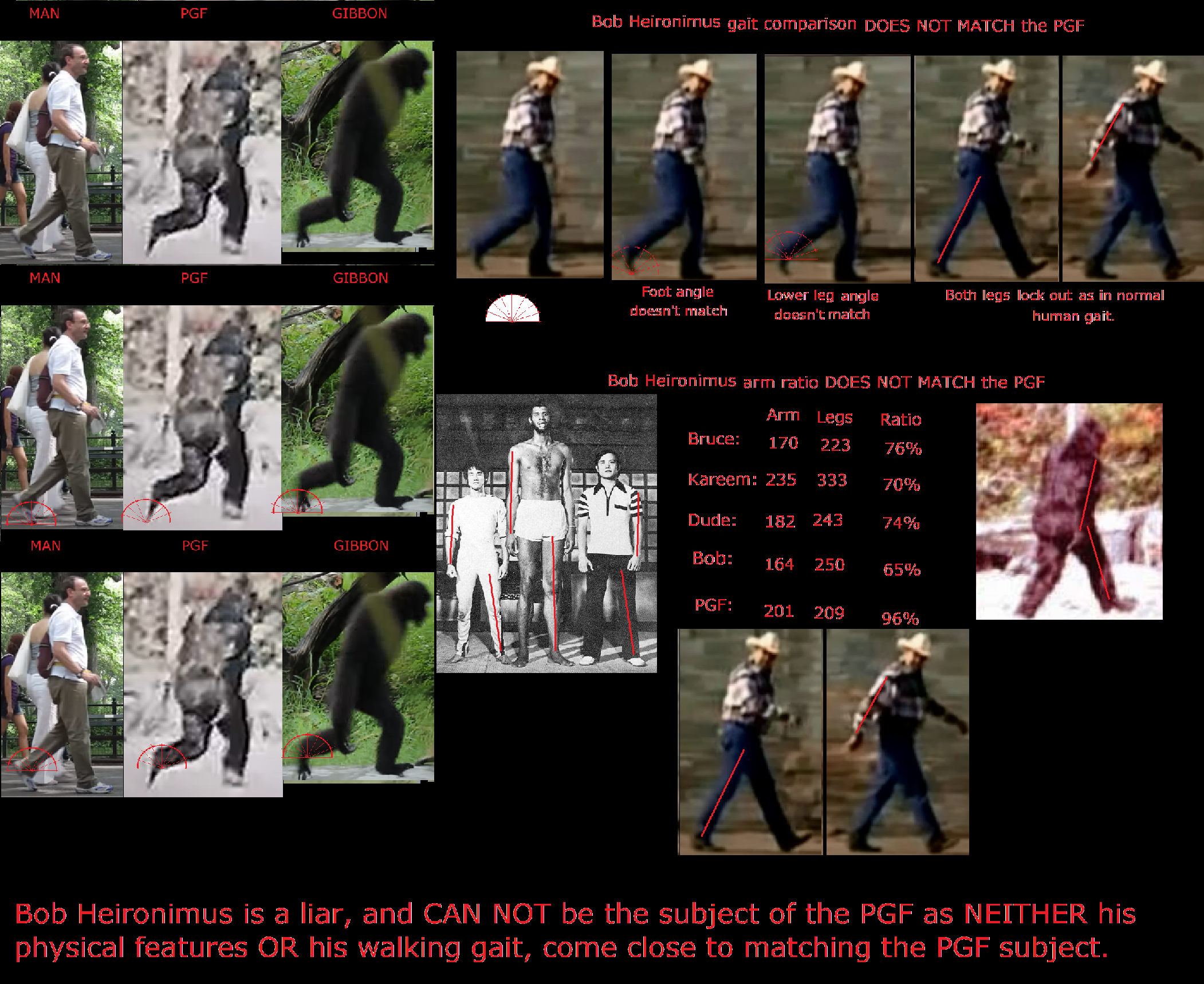 >>215464393>humans cannot walk in that waybob herinimous shows how he walked (in slow motion) and the guy with the camera "can't remember" what framerate he originally used.thus, guy in a suit walking slowly filmed at a low framerate and then sped up.
