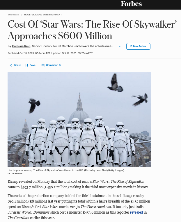 >>215479694>>215484585>>215483857He quotes Forbes and Disney had to declare costs to the UK government under penalty of perjury. This isn't a Hollywood studio's press release, retard.