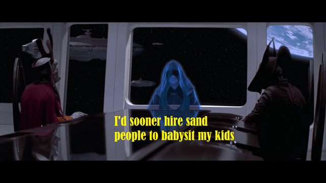 >>215487695The politics scenes were necessary to explain how Senator Palpatine from Naboo became the The Emperor. And they were just a few scenes.