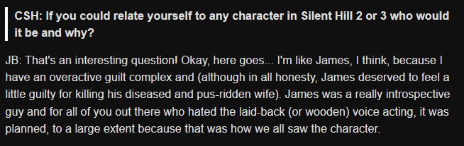 >>215491891Silent Hill 2>protagonist murders their wife>enters a dreamworld where they don't remember what they did>encounter an idealized version of their dead wife>are followed by a mysterious character representing their guilt>eventually come face to face with their conscience and the reality of what they didThe Silent Hill devs were open about being strongly influenced by Lynch
