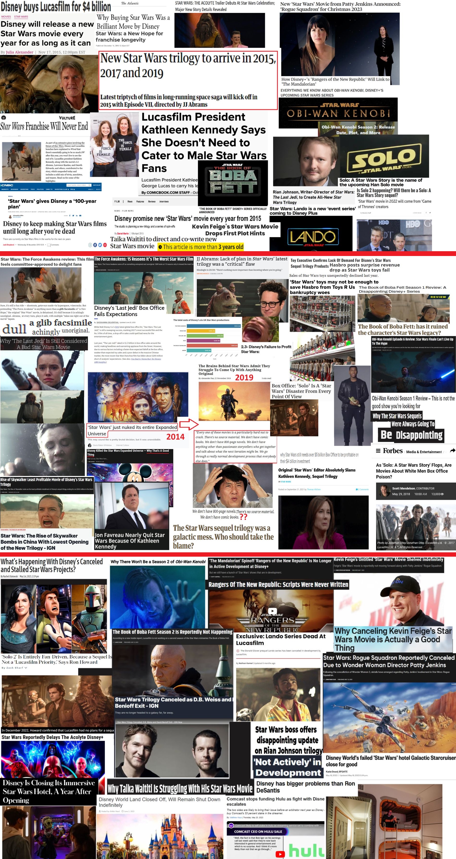 >>215492030Nobody cares anymore because they keep putting out pieces of shit that aren't any good. Mandalorian was okay, I enjoyed Ahsoka because it was a continuation of that Rebels show.Their movies suck balls. Force Awakens was okay, but The Last Jedi was bad, Rise of Skywalker was even worse. And they are spending WAY too much money on these movies only for them to make almost nothing.I mean seriously I could run Lucasfilm better than Kathleen Kennedy has.First thing I am doing is making the Ahsoka series a leadup to a Thrawn trilogy which would have starred all the old characters from the original movies (Han, Leia, Luke, etc). Han and Leia can die off, fine idc. Luke I would have at least kept around until the third movie and then maybe had him do some type of sacrifice to save the good guys. Kylo Ren would not exist. It would be Ben Solo and he's Luke's apprentice, doesn't turn to the dark side. Thrawn defeated, Jedi order returns and is run by Ben, Empire is semi-defeated, no Snake or whatever tf its name was, Palpatine is long dead and doesn't return...No "strong female characters" bullshit. Characters develop naturally in the story and are what they are.