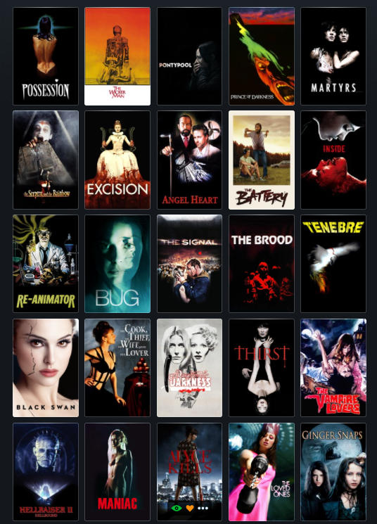 The Cook, the Thief, His Wife, and Her Lover isn't horror is is? I've never seen it