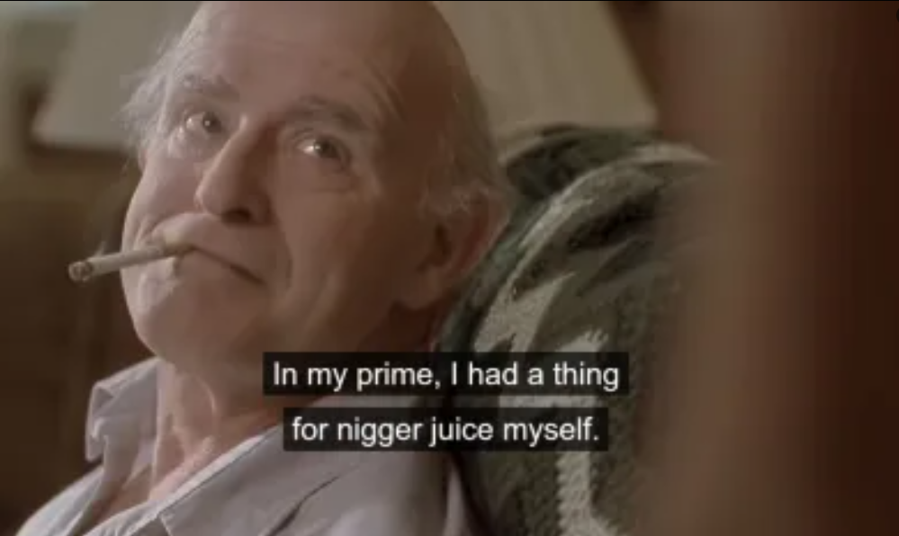 fun factThe way the mod protected racemixing brownoid discord present this movie here is very dishonestThe character on the right is schizophrenic and thinks the nigger is white and she plays along to trick him into abandoning something completely natural and in our genetic code