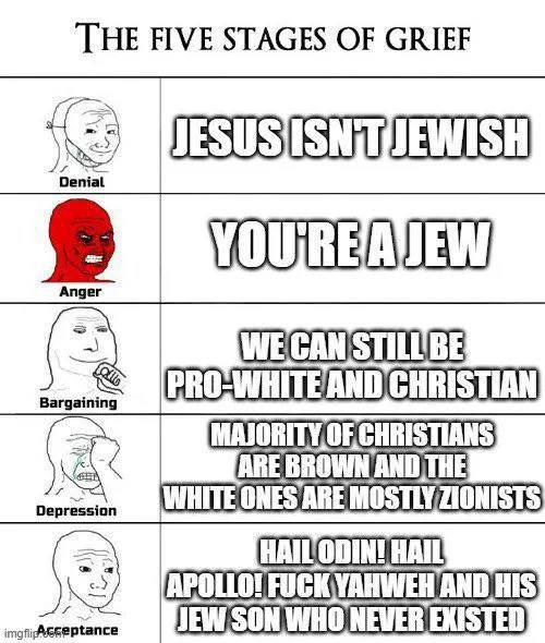 >>215535597which stage of cope are you at, jew worshipper? hopefully your jewish rabbi will come down from his jewish god's heaven to bring salvation to the chosen jews in israel... just 2 more millenia...