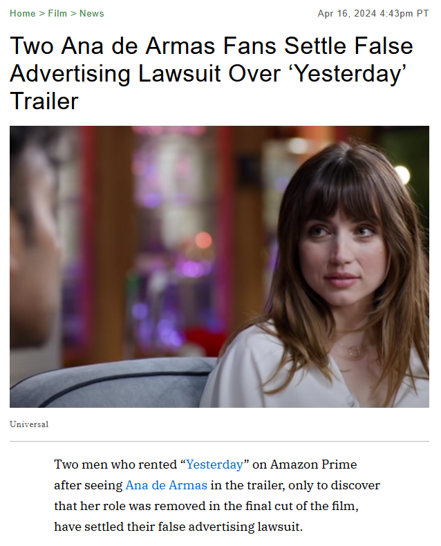 >>215541343You could sue. People sued a film in America successfully because the trailer had an actress that didn't appear in the final cut.