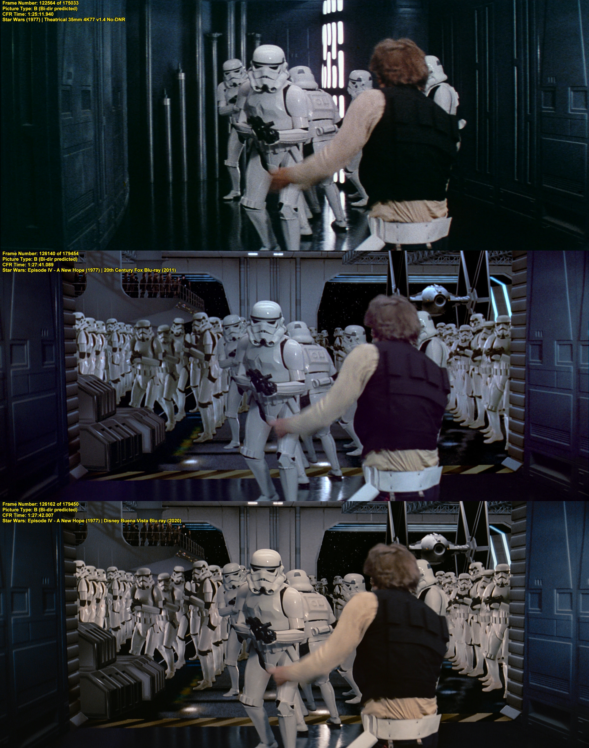 >>215545978It's non-fiction and I've found the smoking gun(s) that prove that the VHS/Laserdisc is not the original film shown on May 25, 1977.
