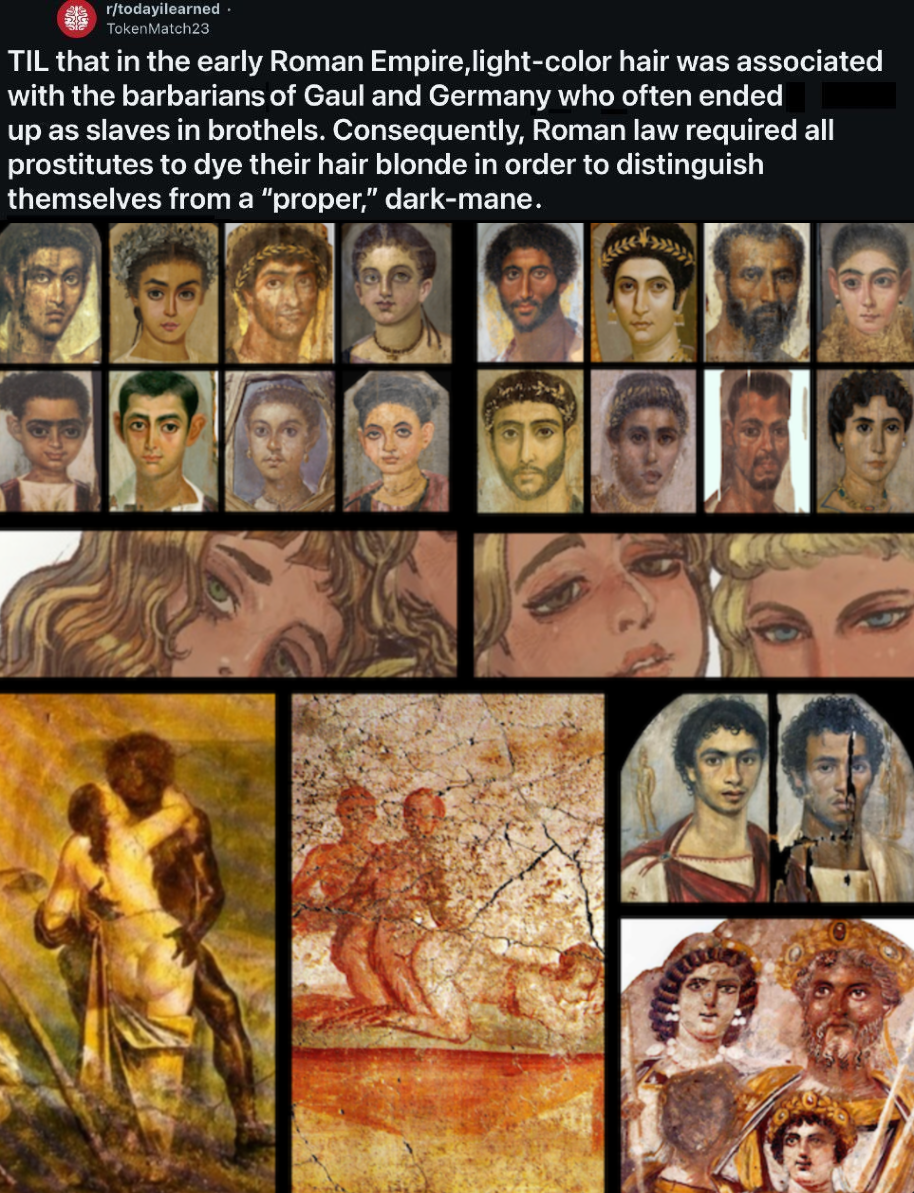 >>215568028yellow hair was considered the mark of a slave, and the mongrlization that occured resulted in the mongrels of modern daybut mutts dont defne legacies
