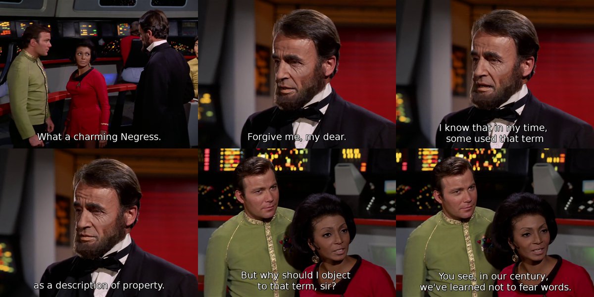 >>215561754>I'm just saying a lot of this narrative around TOS being crazy progressive and ahead of it's time simply for having black people in it is a fiction.But it’s true. You’re talking about an era where it was considered controversial for Kirk to just kiss a black woman on screen. Black people didn’t get to appear in television shows as competent professional people because of the racist attitudes of the time. Films did tons of censorship to limit what black characters could do and say, even going as far as erase depictions of interracial relationships. Uhura just being there every week on TV was considered a major win in black people breaking barriers, that’s why MLK talked Nichols to stay on the show.