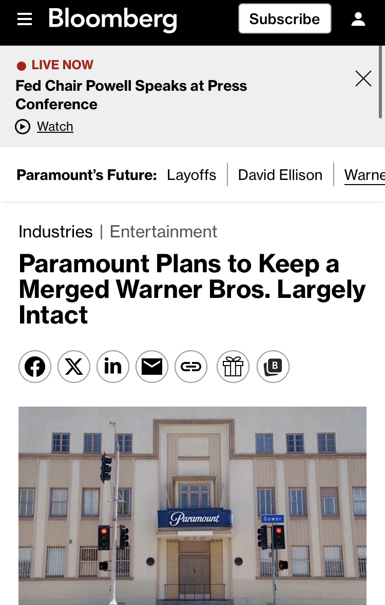 >>215569353Bloomberg >Bloomberg has now reported that David Ellison, CEO and controlling shareholder of Paramount, plans to keep the creative teams of the two studios intact, while consolidating some of the marketing and distribution. https://www.bloomberg.com/news/articles/2025-10-27/paramount-sets-steps-to-get-warner-deal-past-opponents-agencies?embedded-checkout=true
