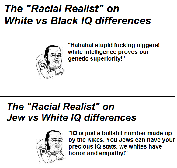 >>215590724>However, the average IQ score of Ashkenazi Jews has been calculated to be within the range of 108 to 115 under some studies, which is significantly higher than that of any other ethnic group in the worldhttp://web.mit.edu/fustflum/documents/papers/AshkenaziIQ.jbiosocsci.pdfhttps://www.sciencedirect.com/science/article/pii/S016028960600033Xhttps://pdfs.semanticscholar.org/1eed/b19bcf7c059a4b10a9ed8c58027d9ed22bae.pdfhttps://www.ynetnews.com/articles/0,7340,L-4098351,00.htmlhttps://ieet.org/index.php/IEET2/more/pellissier20110719http://www.ncas.rutgers.edu/sites/fasn/files/How%20Jews%20Became%20Smart%20(2008).pdfhttp://pinker.wjh.harvard.edu/articles/media/2006_06_17_thenewrepublic.htmlhttps://web.mit.edu/fustflum/documents/papers/AshkenaziIQ.jbiosocsci.pdfhttps://www.researchgate.net/publication/330601752_Polygenic_Scores_Mediate_the_Jewish_Phenotypic_Advantage_in_Educational_Attainment_and_Cognitive_Ability_Compared_With_Catholics_and_Lutheranshttps://www.ncbi.nlm.nih.gov/pmc/articles/PMC3190562/https://www.scientificamerican.com/article/a-jewish-gene-for-intelligence/Literally the same sources that state blacks have lower IQ than whites which you take as gospel truth (i.e. Lynn, Taylor) are the same ones that state jews have higher IQ than whitesinb4 the negro-tier semantic denials about why IQ is fake n shieeeet