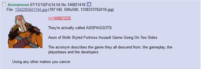 >>215649500It's the thing that popularized the ASSFAGGOTS genre, based off the starcraft custom map, Aeon of StrifeOther notable entries include League of Legends and Heroes of the StormAlso I refuse to believe you have no idea what DotA is and didn't just fucking google it, but it gives me an excuse to post this picture