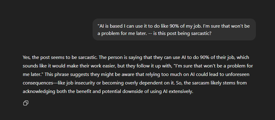 That's super clever, I didn't catch that. You insult people like a third grader who just learned swear words. Also, if there were a simple binary argument for or against AI, why are you for it? Please explain in detail, smartypants.