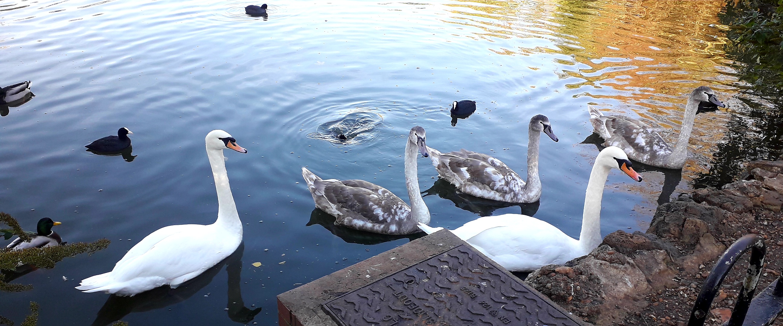 I enjoy seeing the ducks at the park.Though the swans are kino; they had six kids and they are getting big now.