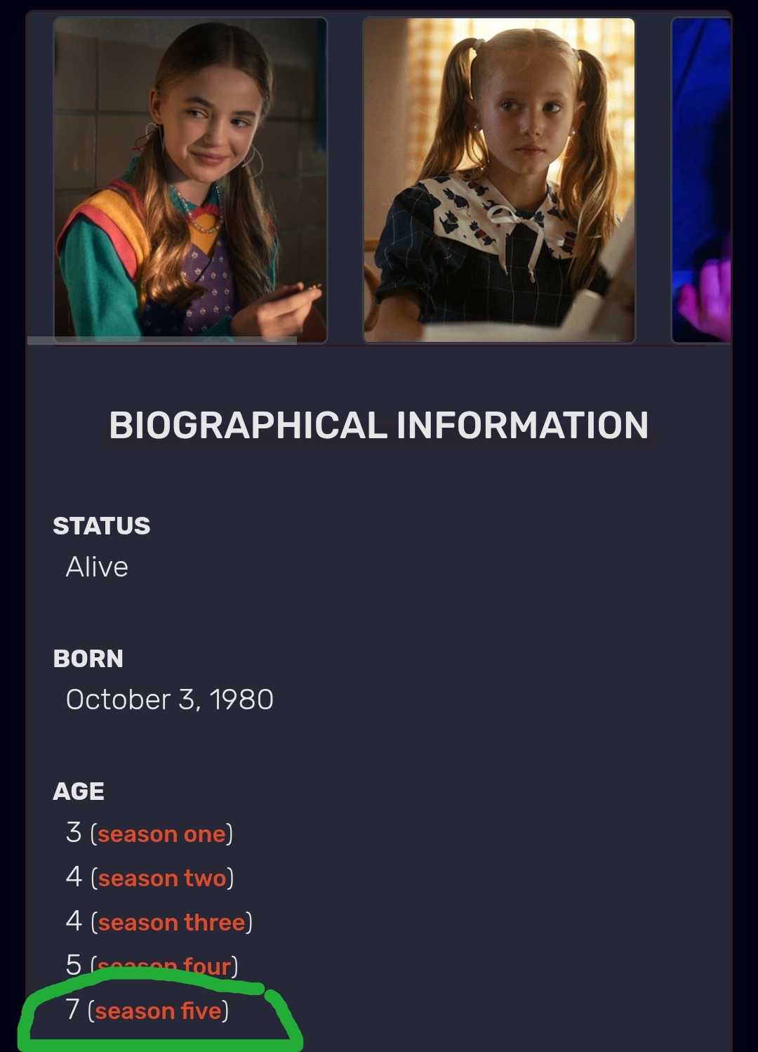 So it's the opposite of Mike's granddaughter, who somehow was the same age in Better Call Saul, even though she should have been like 3.