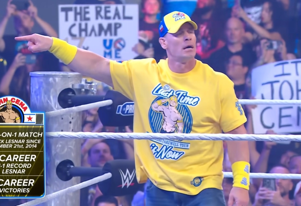 John Cena in his recent match against Brock Lesnar, appropriately rockin' that pluriyellow